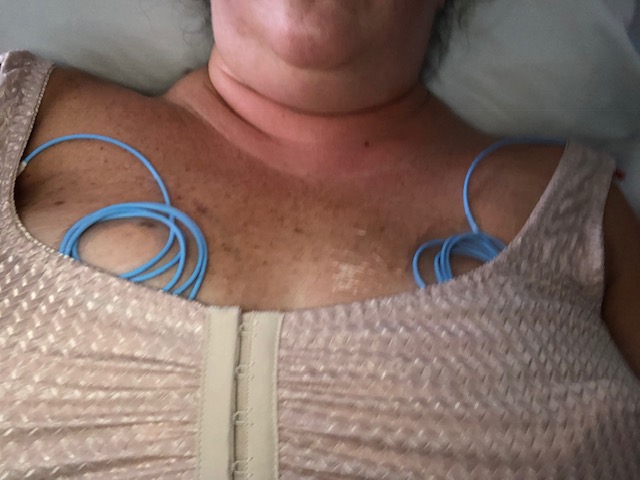 Previous Image Next Image IMG_4940 Right out of surgery- those lines on my chest are the Doppler’s they will hook up to make sure I have good blood flow.